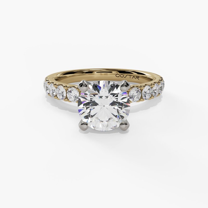 Yellow Gold 14 Karat Straight Diamond Engagement Ring Size 6 With 0.93TW Round Brilliant F/G Vs2 Diamonds (Setting only, center stone not included)