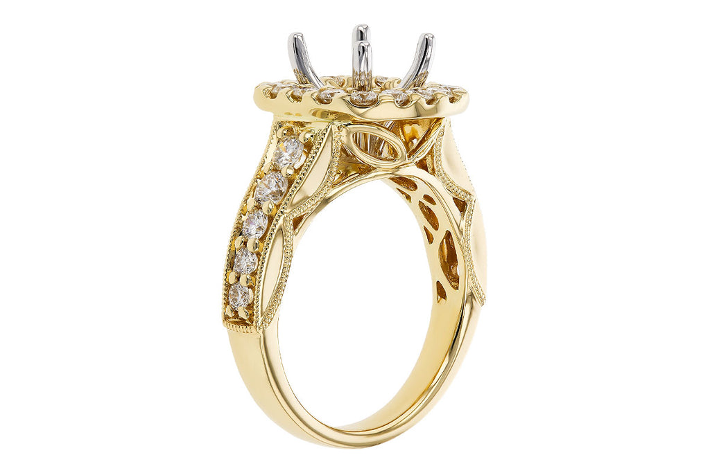 Yellow Gold 14 Karat Halo Engagement Ring Size 6.5 With 1.05TW Round Brilliant G Si1 Diamonds (Setting only, center stone not included)