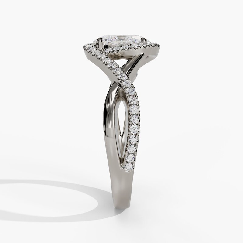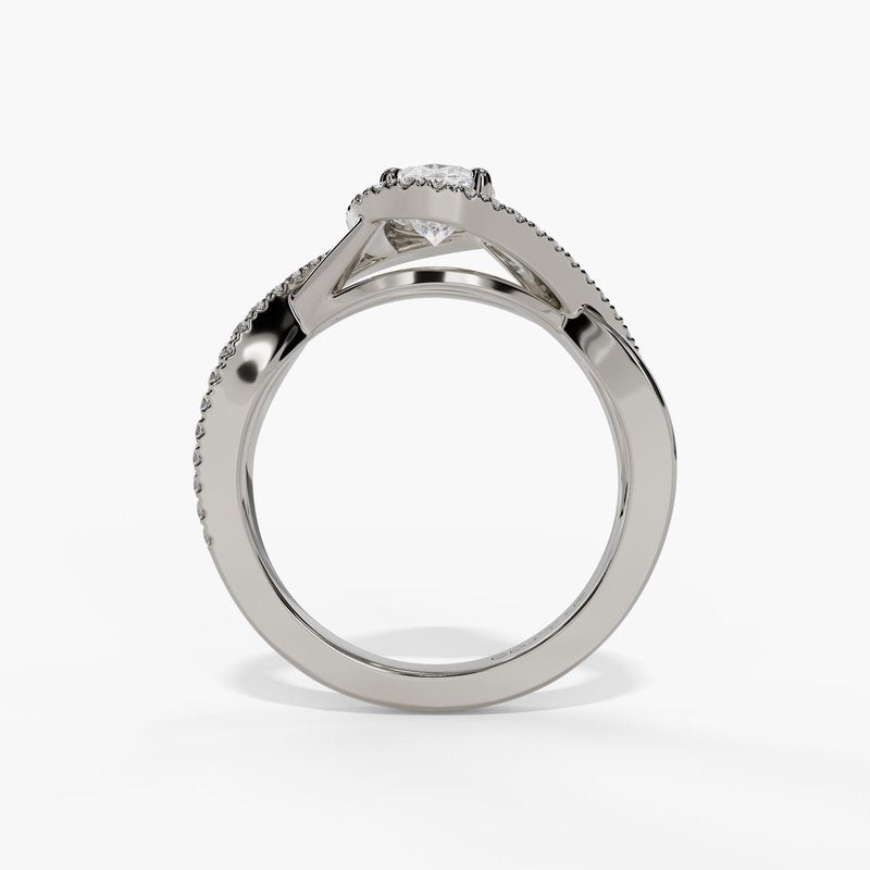 White Gold 14 Karat Twisted Oval Diamond Halo Engagement Ring 0.30TW Round Brilliant Diamonds Color-G/H Clarity-Si1 (Setting only, center stone not included.)