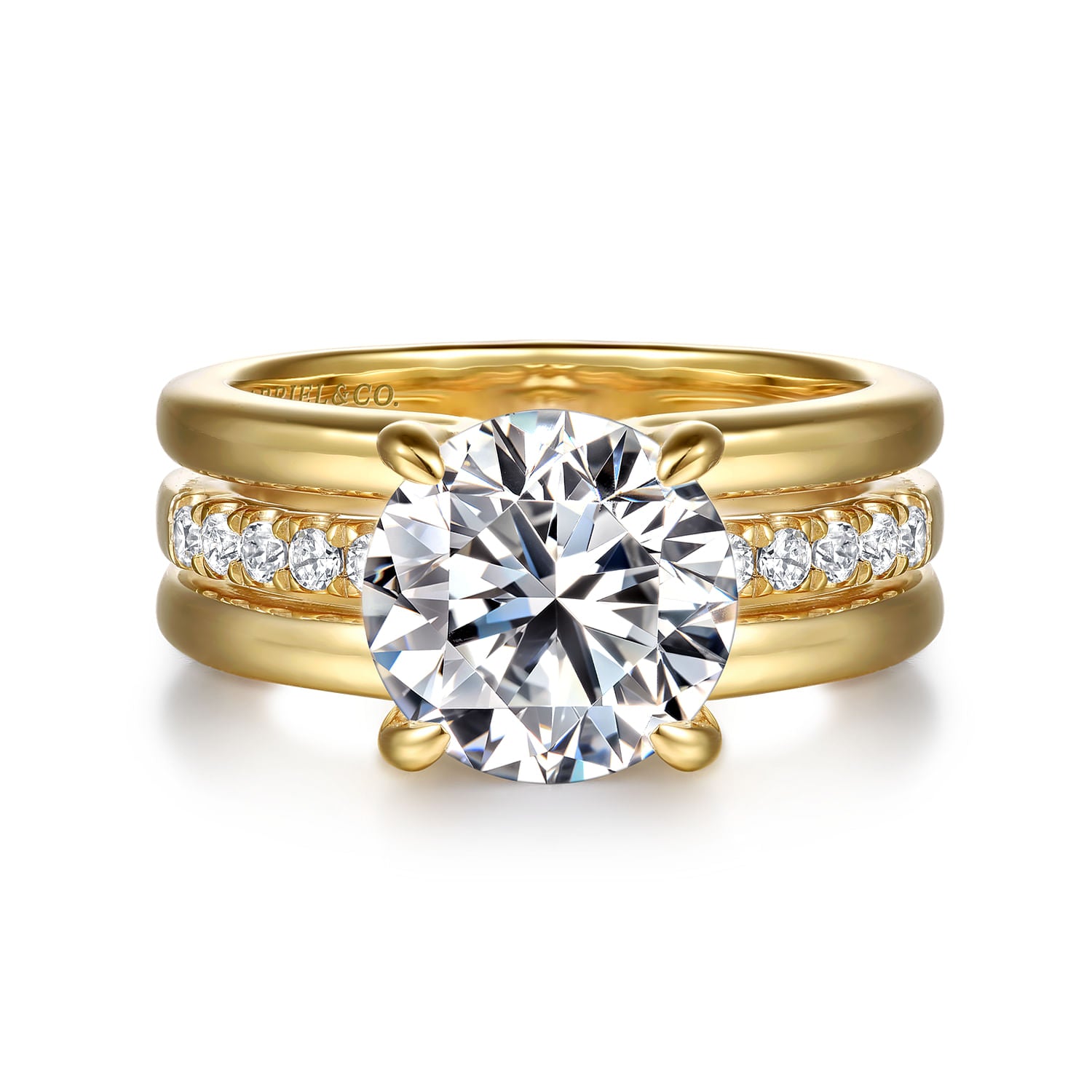 Yellow 14 Karat Ring 0.35ctw. Round Brilliant Diamonds Color-G/H Clarity-SI1 (Setting only, center stone not included.)