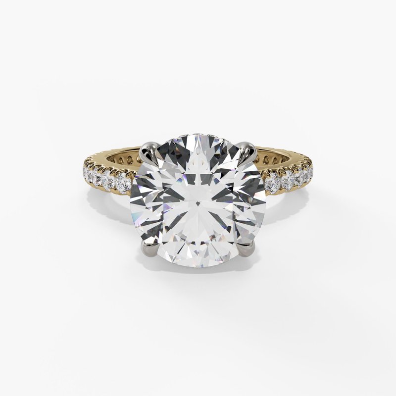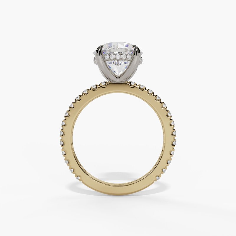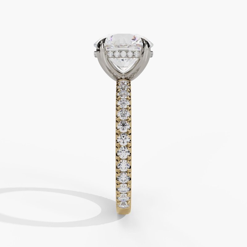 14 Karat White and Yellow Gold Round Hidden Halo Engagement Ring 0.50TW Round Brilliant Diamonds Color-F/G Clarity-VS2 (Setting only, center stone not included.)