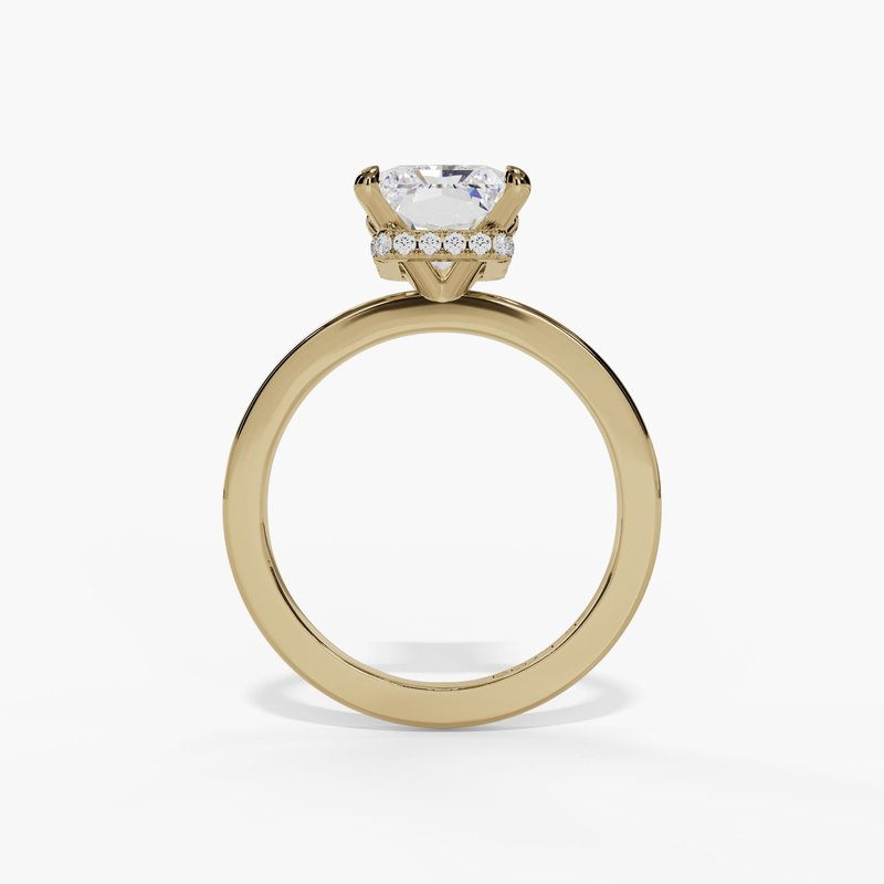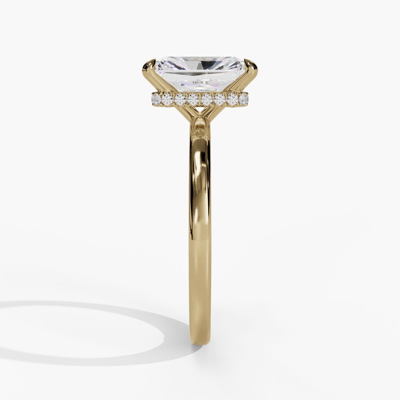 Yellow Gold 14 Karat Radiant Hidden Halo Engagement Ring 0.08TW Round Brilliant Diamonds Color-G/H Clarity-SI1 (Setting only, center stone not included.)