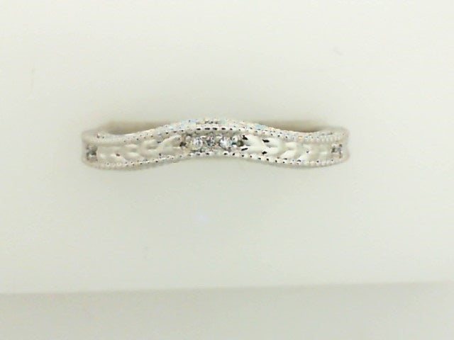White 14 Karat Curved Contour Wedding Band Size 6.75 With = 0.035Tw Round Brilliant Diamonds
