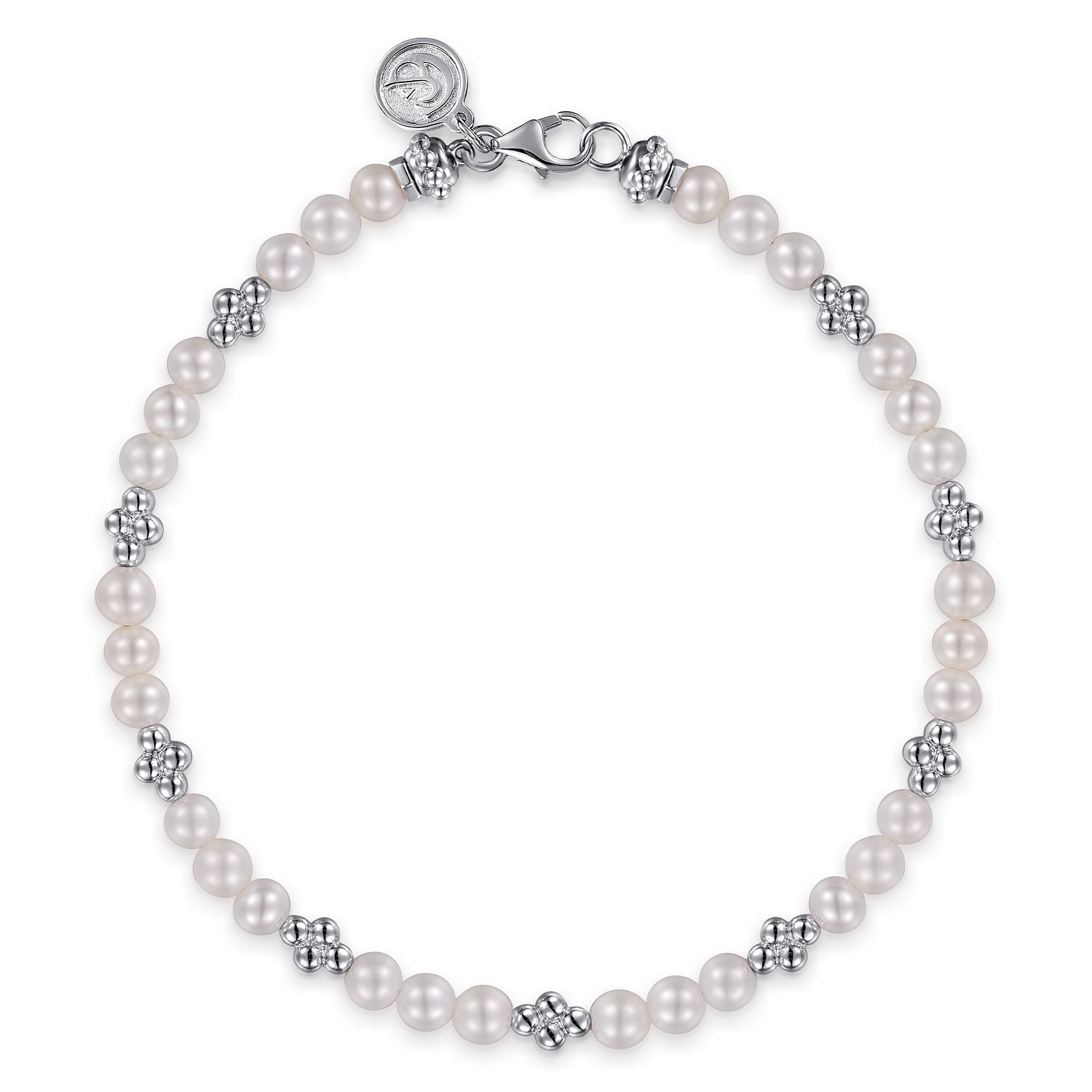 Lady's White Sterling Silver Single Bracelet Length 7.25 With = 2.77Twt Fresh Water White Pearls