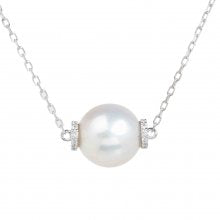 Yellow 14 Karat Single Strand Length 18 With 0.06Tw Round Brilliant G/H Si1 Diamonds And 10.00Mm Fresh Water White Pearls
