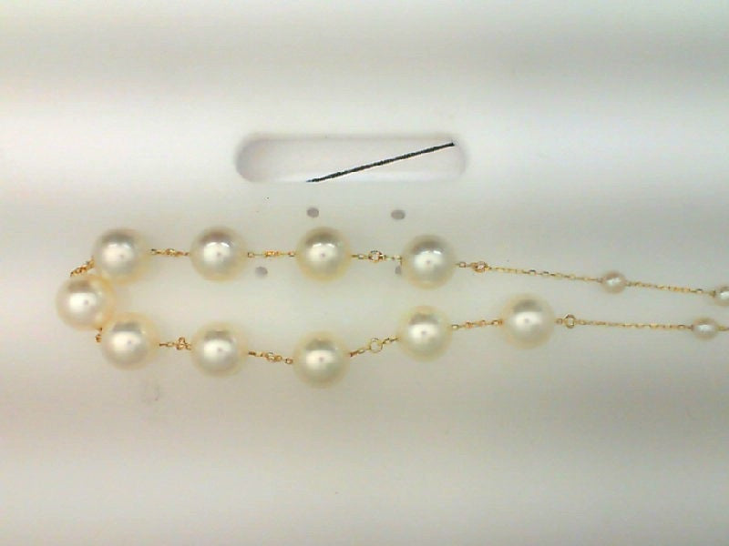 Lady's Yellow 14 Karat Chain Strand Length 22 With = 3.00 To 7.00Mm Round White Pearls