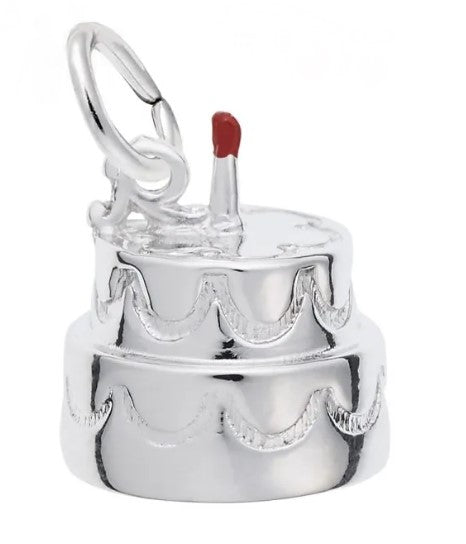 White Sterling Silver Two-Tier Birthday Cake with Candle Charm