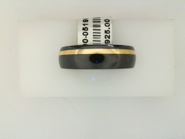 14KY 6 mm wide/Domed/Zirconium band with one 1 mm Off Center inlay of 14K yellow Gold. size 8.5