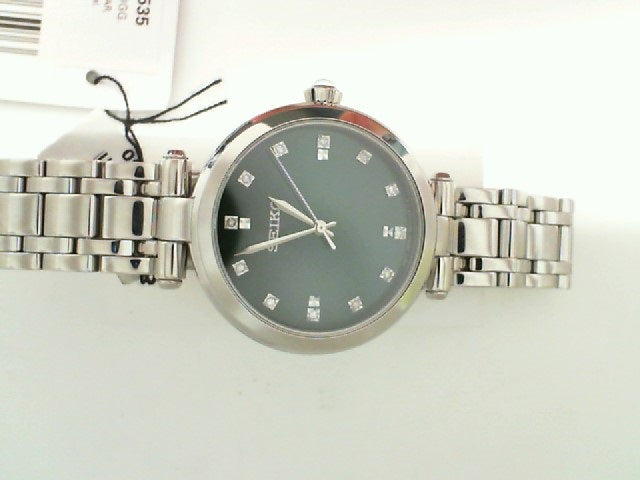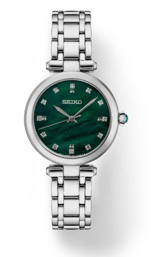 White Stainless steel Dress Watch with Green Mother of Pearl Dial and 12 Diamonds