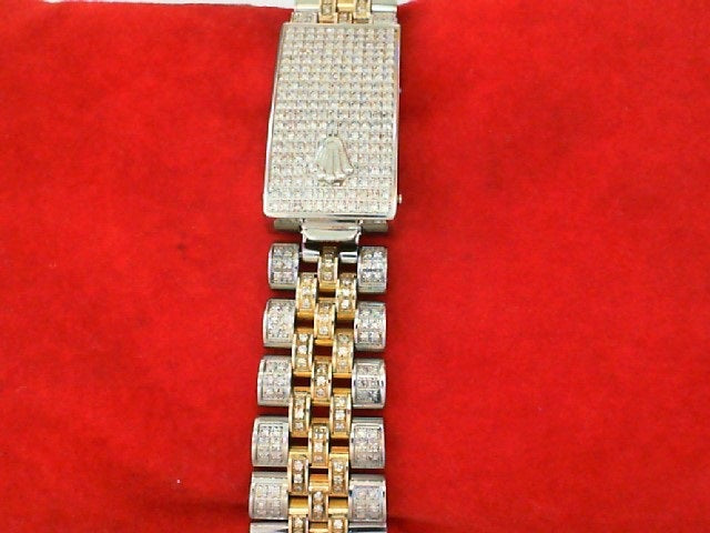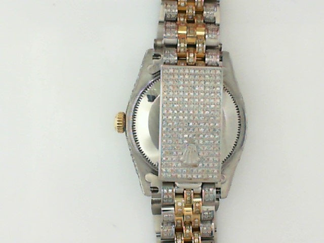 Bezel: 18k Yellow Gold Diamonds after market Bracelet: 18k Yellow and Stainless Steel with Pave Diamonds after market
